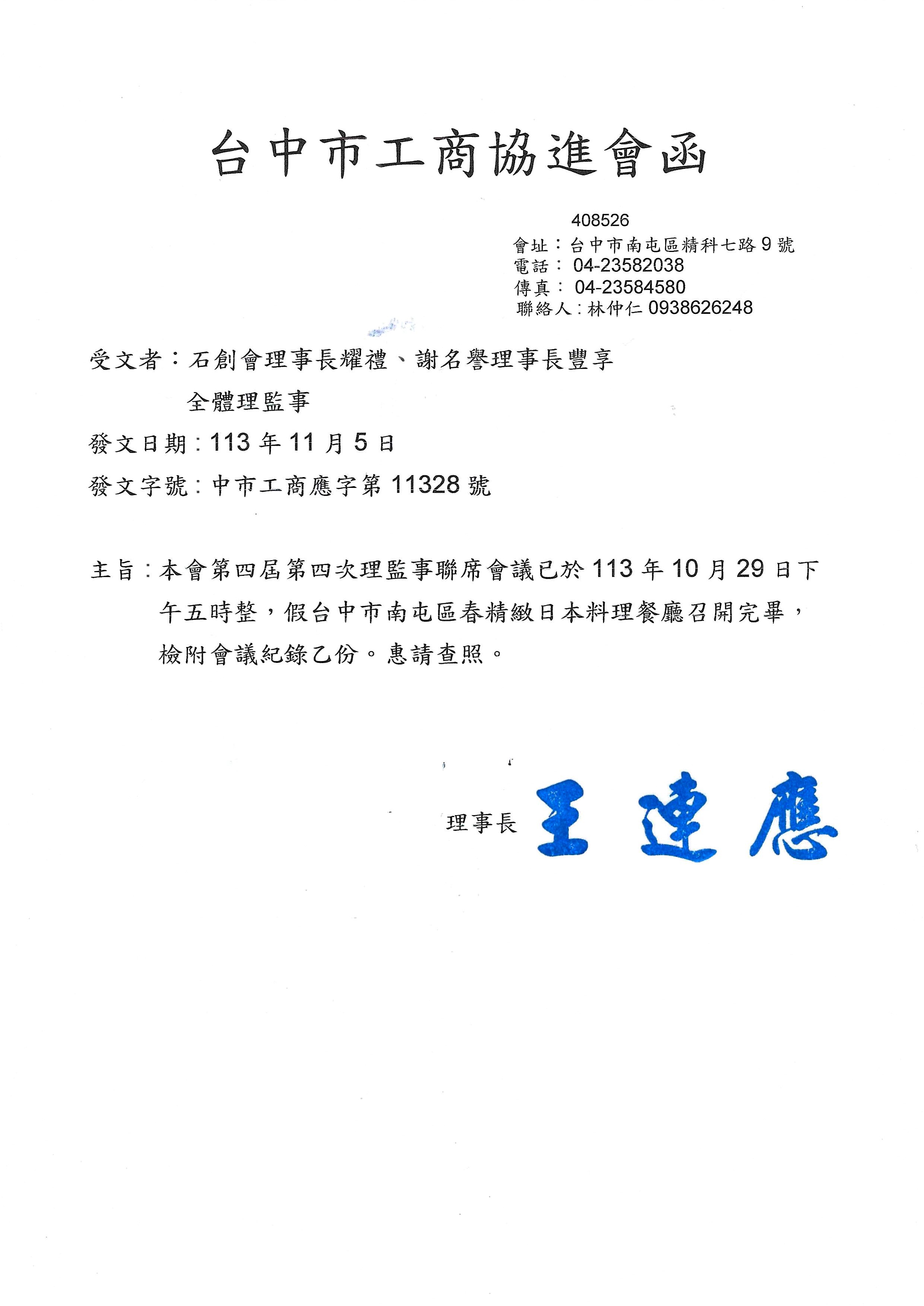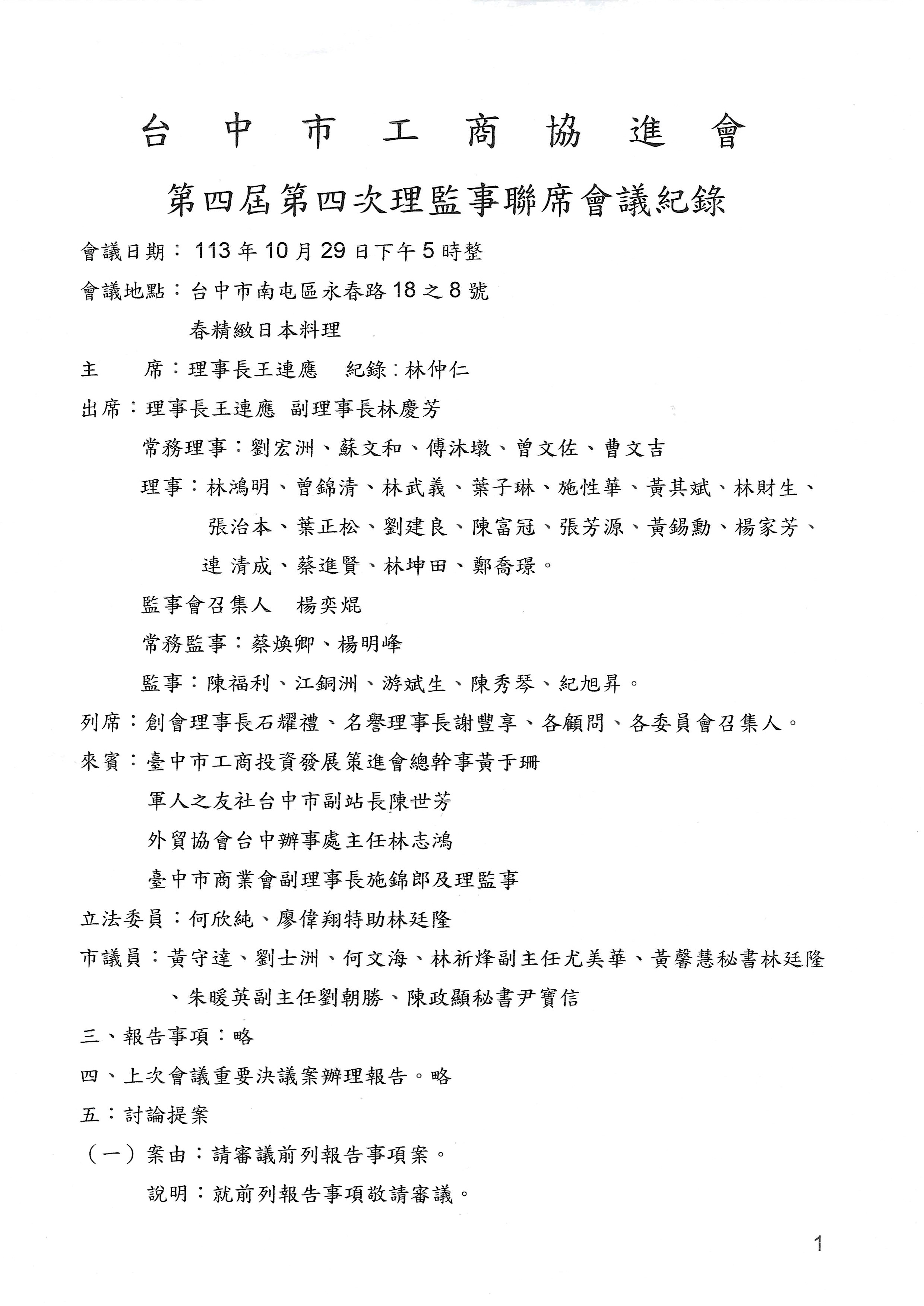 第四屆第四次理監事聯席會議紀錄